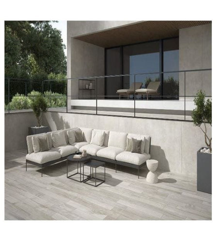 Ronde plantenbak L Kuip Lignum Acacia FSC 55 x 38 cm geborsteld Grijs