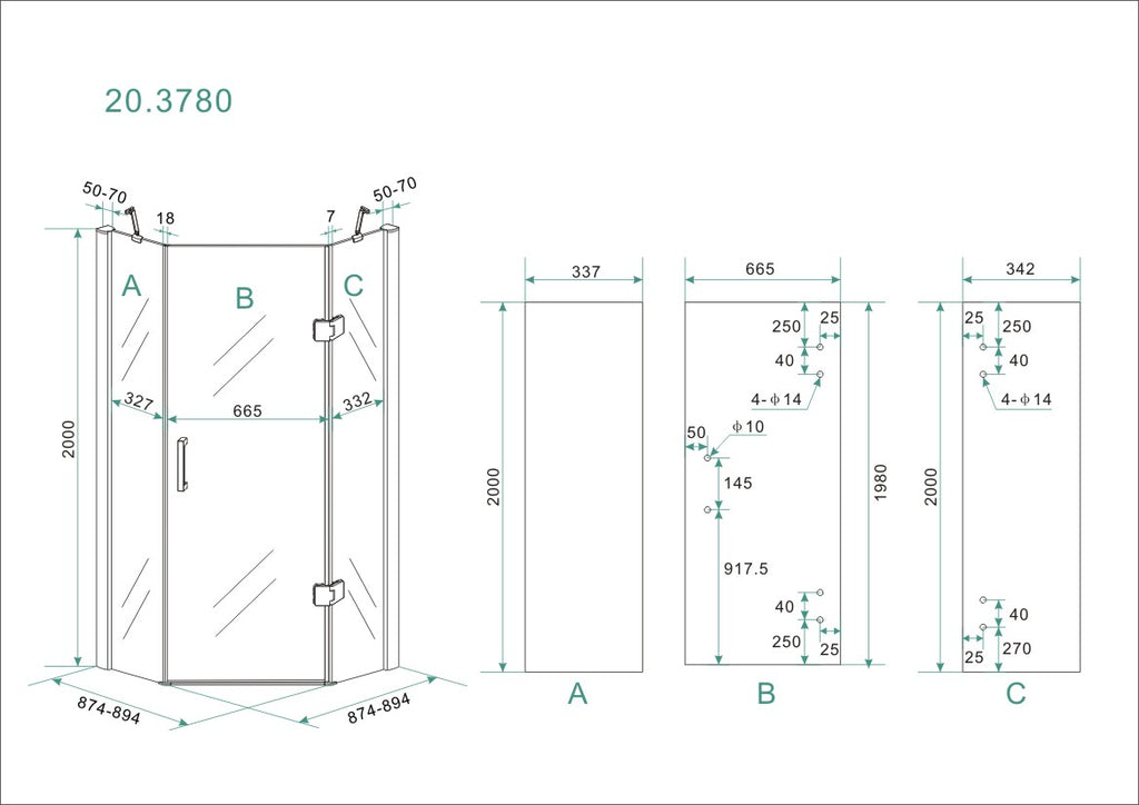 Pento cabine met 1 draaideur 900 x 900 x 2000 x 8 mm nano helder glas/chroom