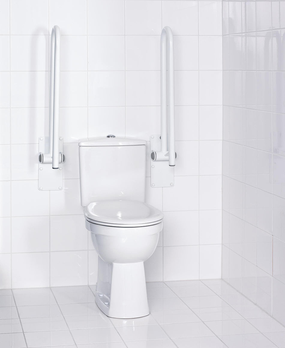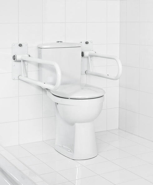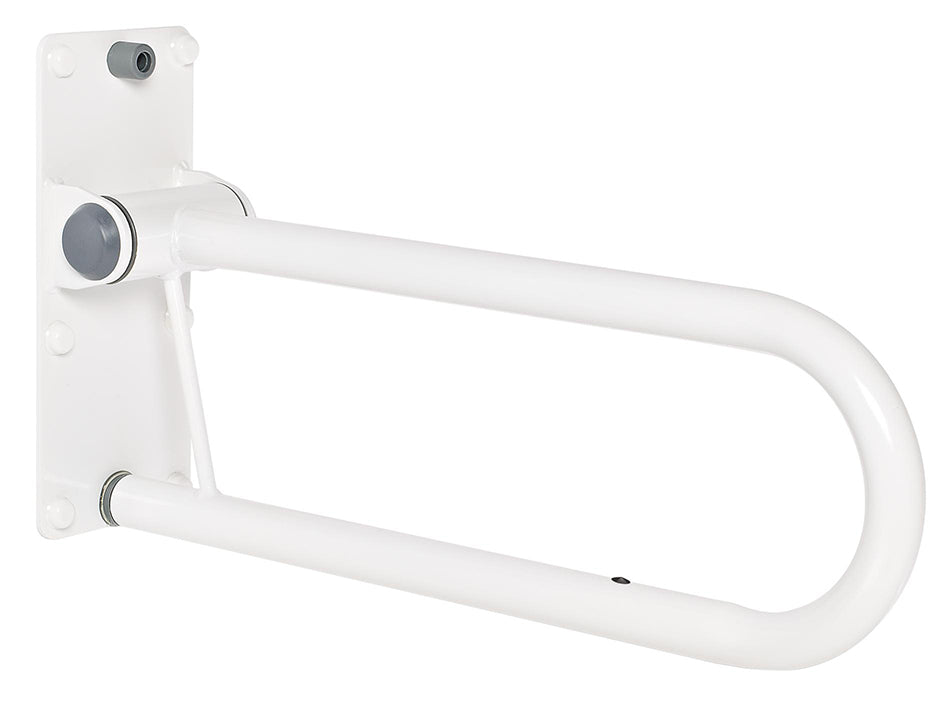 Met de opklapbare beugel kan er veilig en zelfstandig gebruik worden gemaakt van het toilet. Zitten en opstaan wordt zo een stuk gemakkelijker gemaakt. Installeer de beugel in de buurt van het toilet of de wastafel. De beugel is uitgerust met een valbeveiligingsmechanisme die ervoor zorgt dat de stang langzaam naar beneden schuift. Het draagvermogen is maximaal 100 kg. Wanneer deze niet in gebruik is kan de beugel verticaal opgeklapt worden.