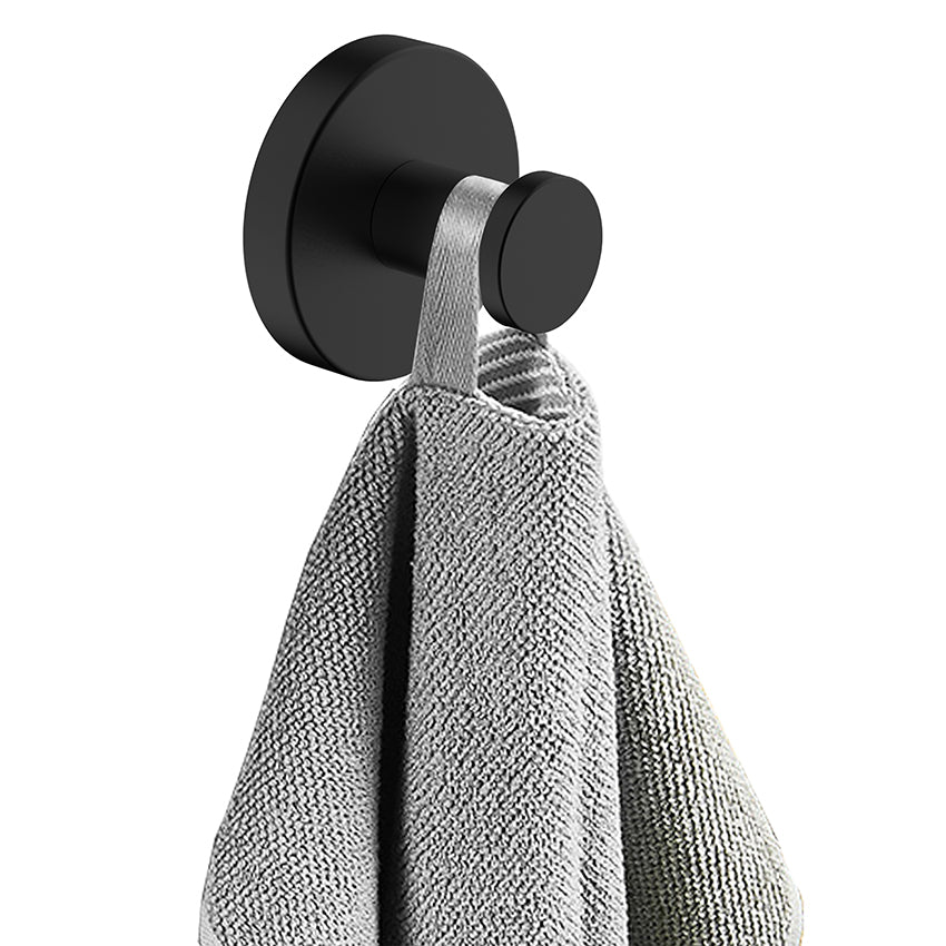 Deze Wiesbaden Alonzo handdoekhaak in de kleur mat zwart is voldoende groot en stevig om je handdoeken of badjas gemakkelijk aan op te hangen. De handdoekhaak is gemaakt van hoogwaardige materialen en je monteert hem eenvoudig aan de wand met de meegeleverde schroeven en Fischer pluggen. Combineer deze handdoekhaak met andere accessoires uit de Alonzo serie en maak één geheel van je badkamer of toilet.
