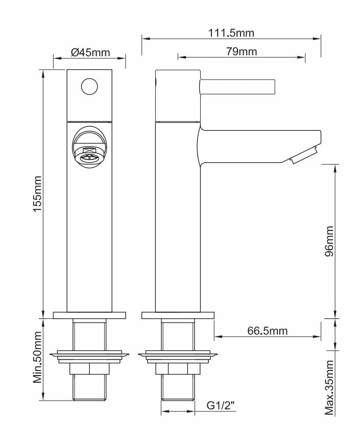 Met een handige 1/2" buitendraad aansluiting is de installatie van deze kraan eenvoudig en probleemloos.