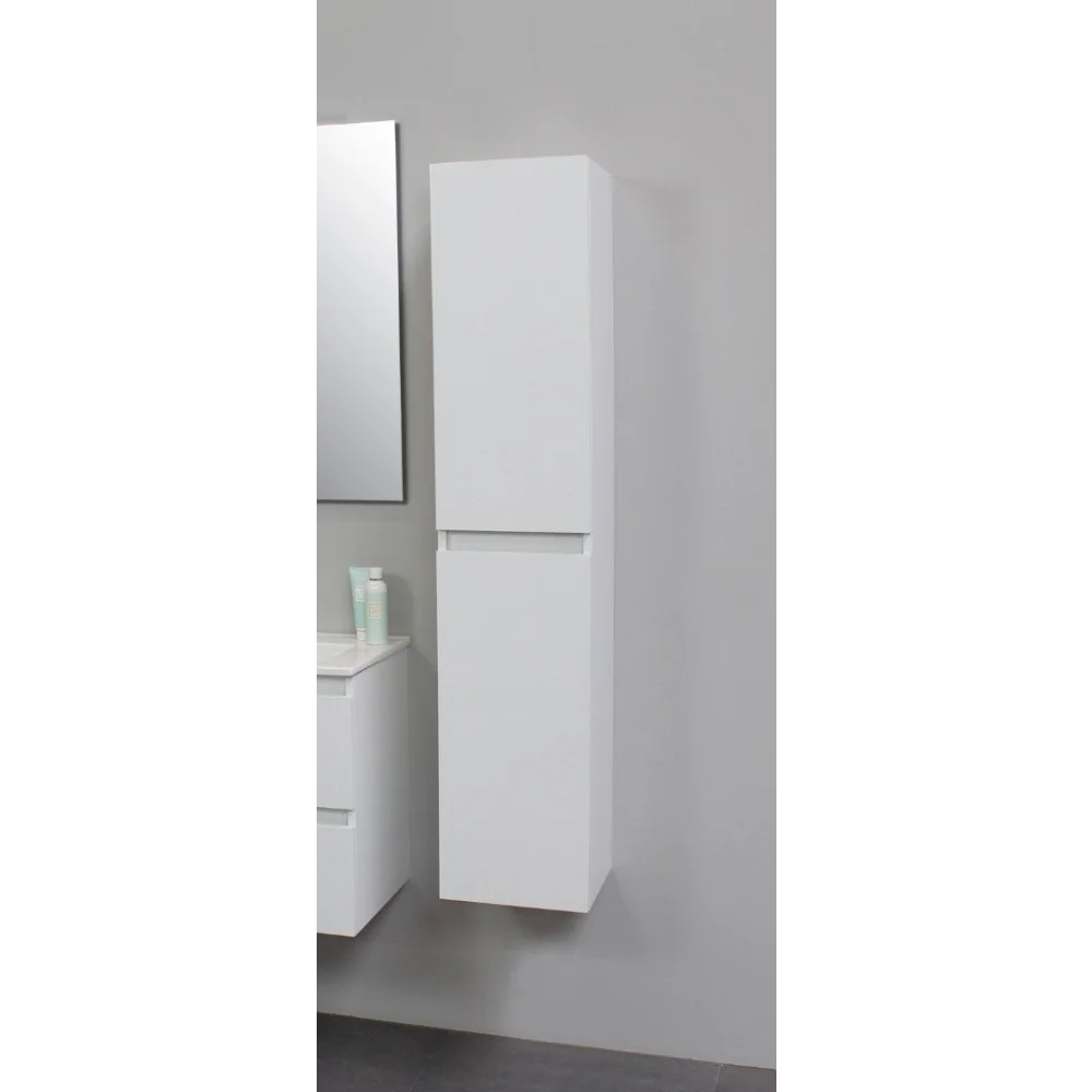 De hangende kolomkast Como is een praktische en stijlvolle toevoeging aan je badkamer. Met een breedte van 35 cm, een diepte van 30 cm en een hoogte van 160 cm biedt deze kast voldoende opbergruimte voor al je badkamerbenodigdheden. De kast is gemaakt van glanzend wit MDF, wat zorgt voor een moderne en elegante uitstraling.