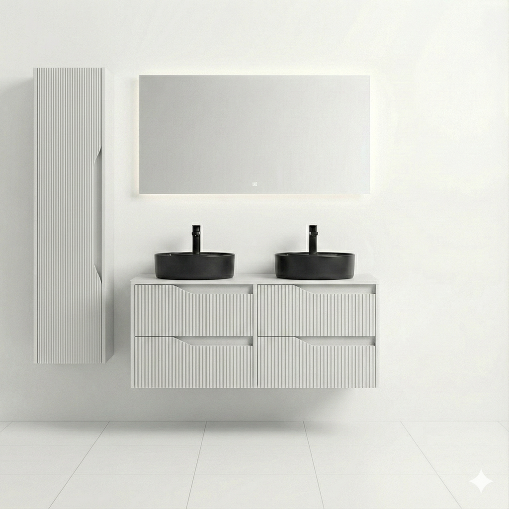 Soho Badkamermeubel Mat Wit 120cm – 2x Mat Zwarte Waskom – 4 Lades
