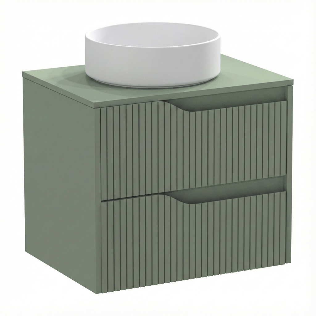 Soho Badkamermeubel Mat Groen 60cm – Mat Witte Waskom – 2 Lades