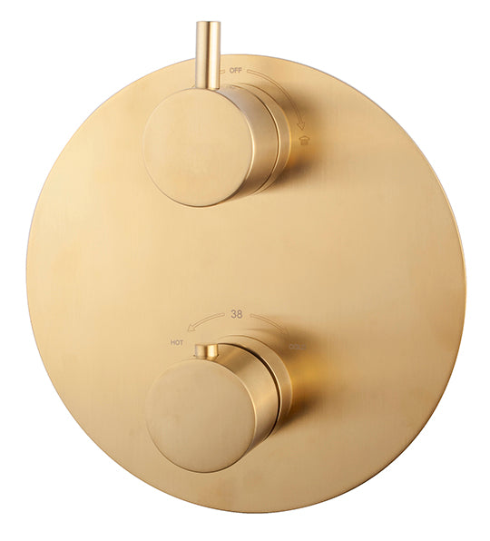Caral afbouwdeel rond inbouwthermostaat 2 weg geborsteld messing PVD