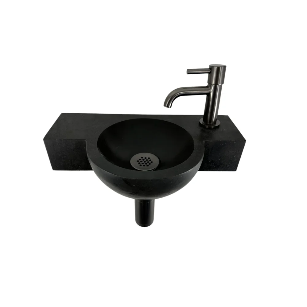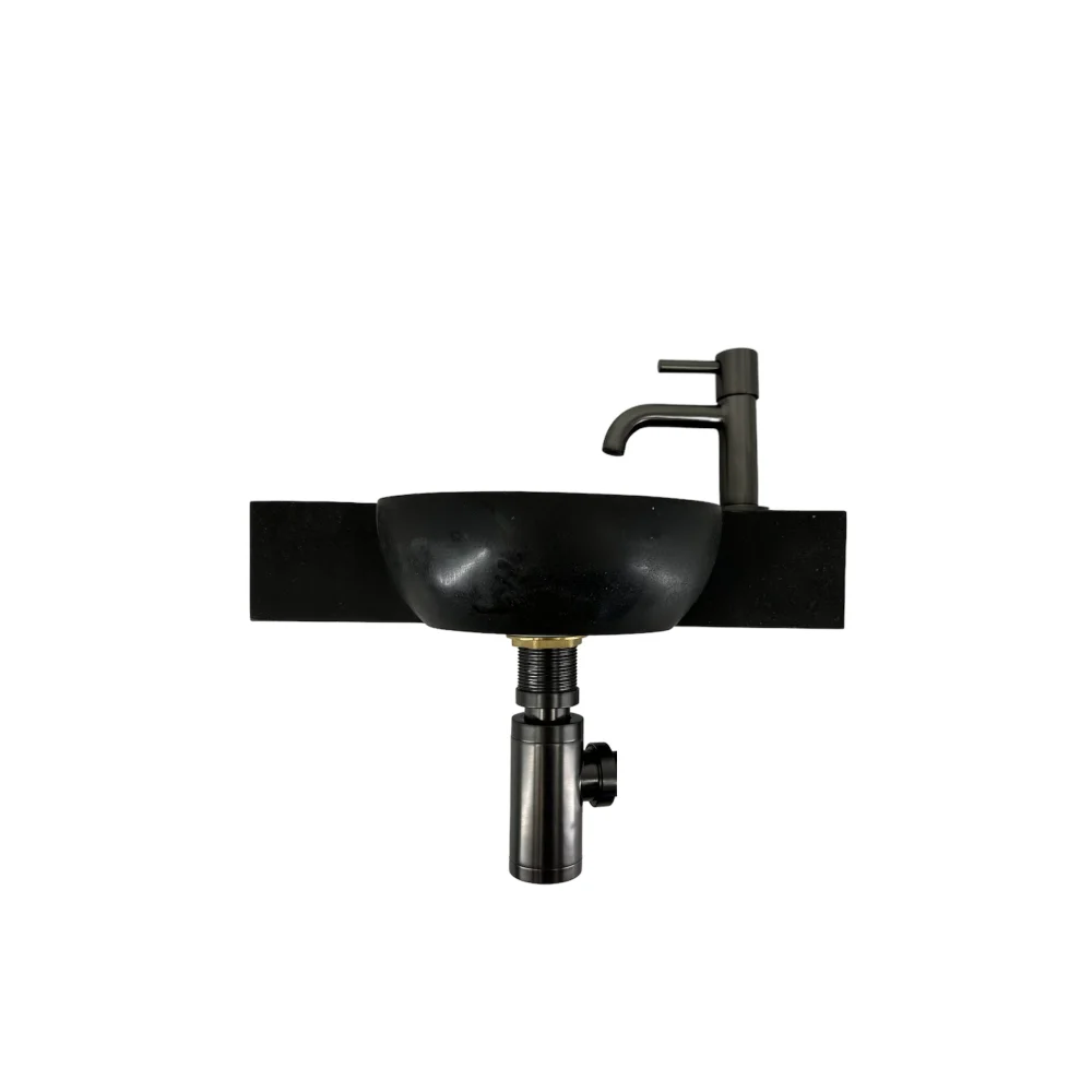 Fonteinset Fynn L'aqua Hardsteen met Gun metal kraan en sifon