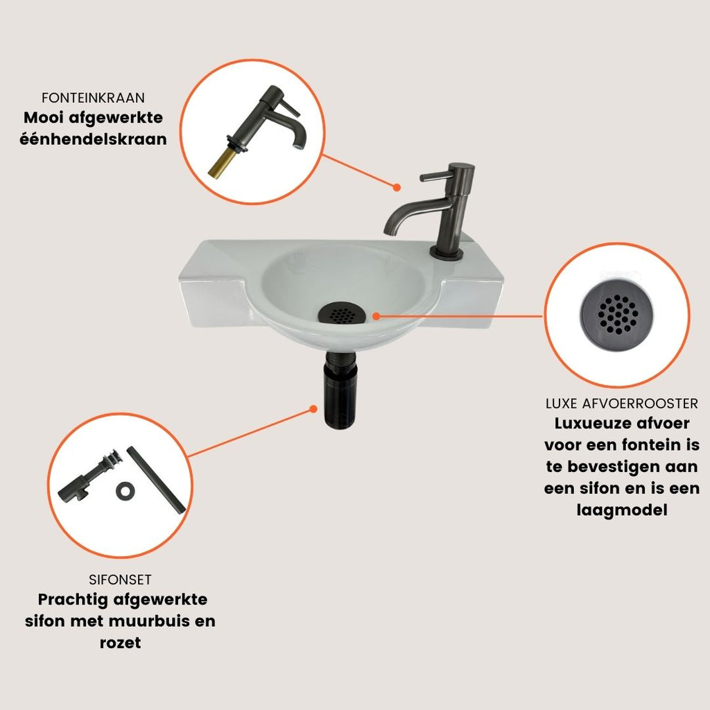 Kies voor de Fonteinset Julie wit L'aqua Keramiek met Gun metal kraan en sifon en ervaar hoe kleine details een groot verschil kunnen maken in jouw toiletruimte.