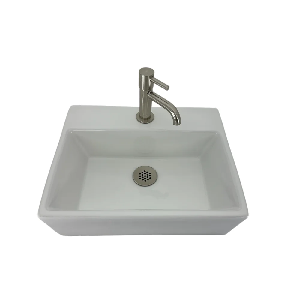 De meegeleverde kraan in geborsteld nikkel voegt een vleugje subtiele luxe toe aan je toiletruimte. De kraan is ontworpen voor gebruiksgemak en is voorzien van een keramisch binnenwerk voor jarenlange probleemloze werking. De bijpassende sifon in geborsteld nikkel maakt de look compleet en zorgt voor een vlotte waterafvoer.