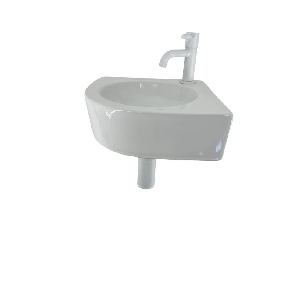 De set wordt geleverd met een stijlvolle matte witte kraan, voorzien van één kraangat voor optimaal gebruiksgemak. De bijpassende sifon zorgt voor een probleemloze afvoer, terwijl het meegeleverde bevestigingsmateriaal een snelle en eenvoudige installatie garandeert.