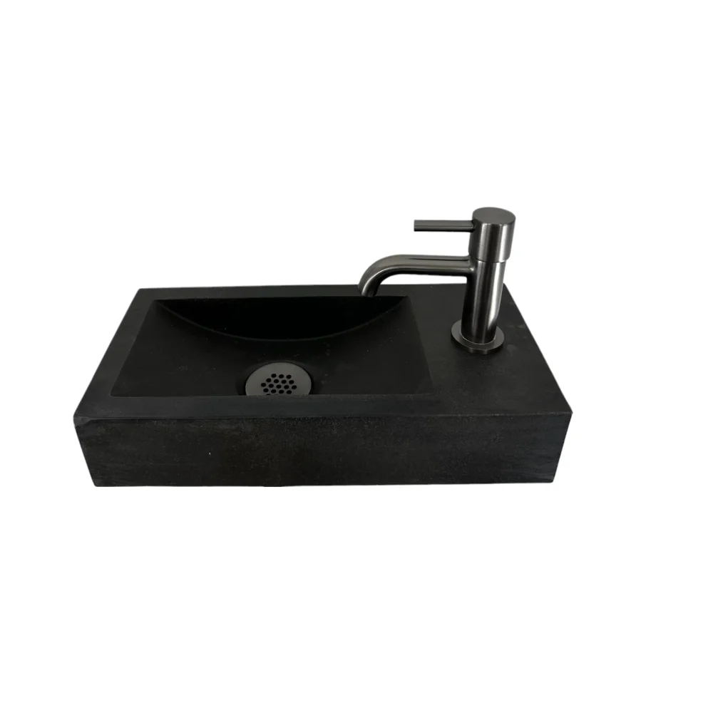 Fonteinset Oskar L'aqua Hardsteen met Gun metal kraan en sifon