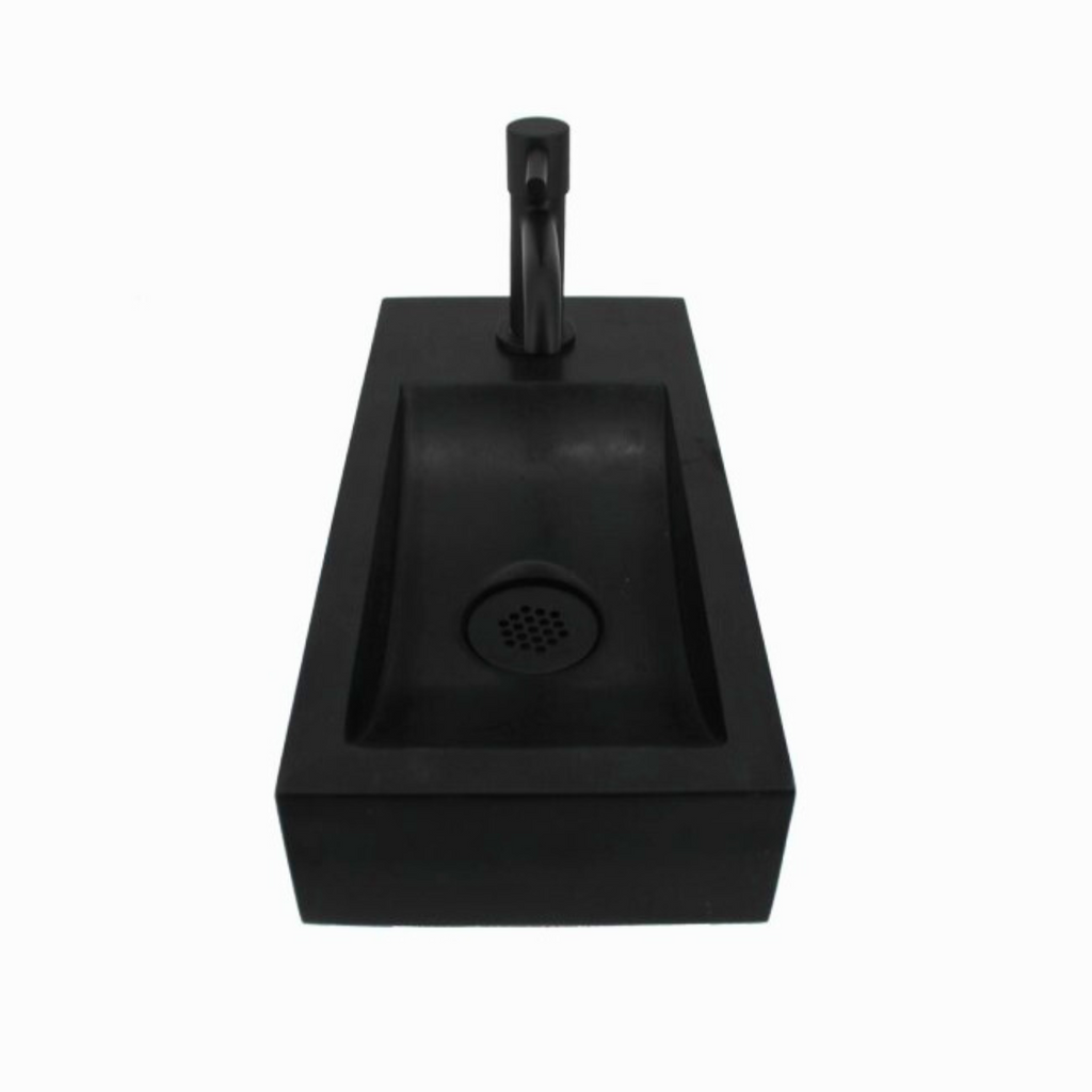 Upgrade jouw toiletruimte met de Fonteinset Oskar Hardsteen met Zwarte Kraan en Sifon - een stijlvolle en praktische keuze voor jouw huis.