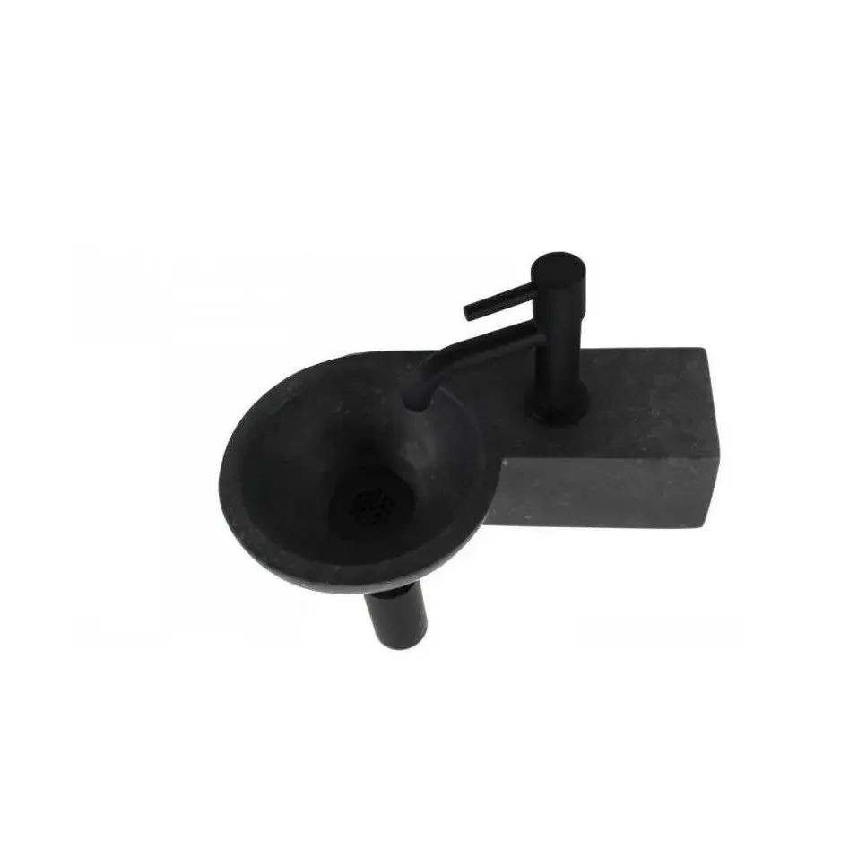 Fonteinset Tomas L'aqua Natuursteen met Zwarte kraan en sifon