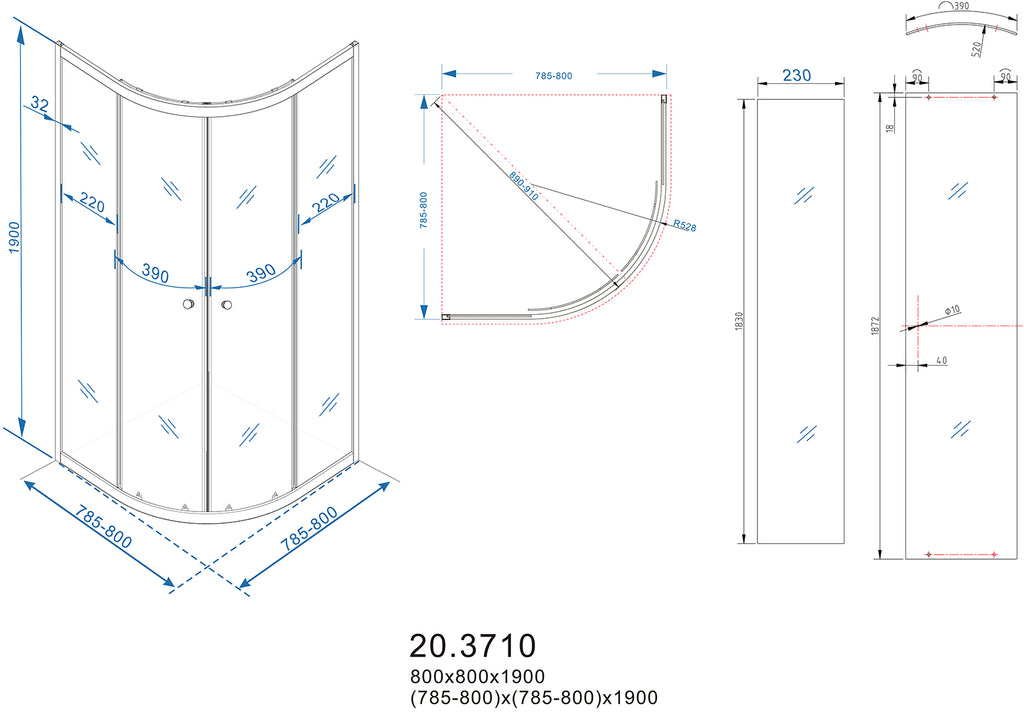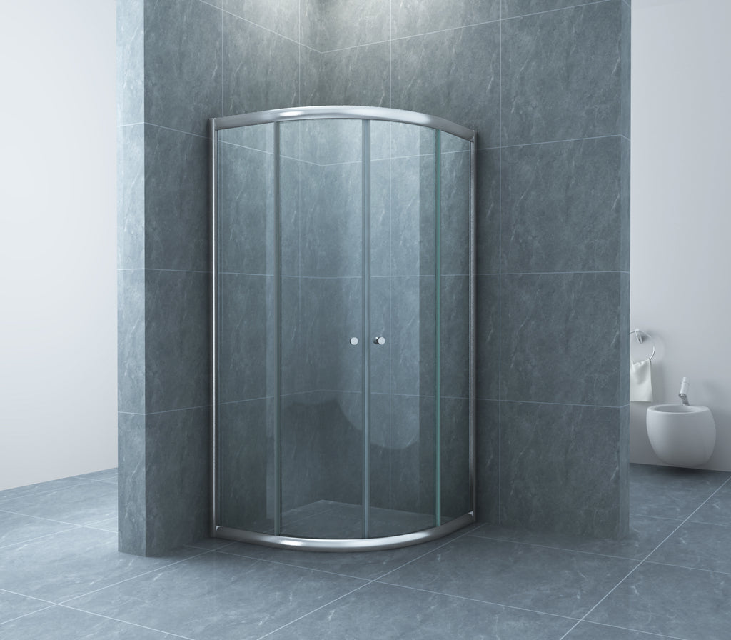 Eco kwartronde cabine met twee schuifdeuren 800 x 800 x 1900 x 5 mm nano helder glas/chroom