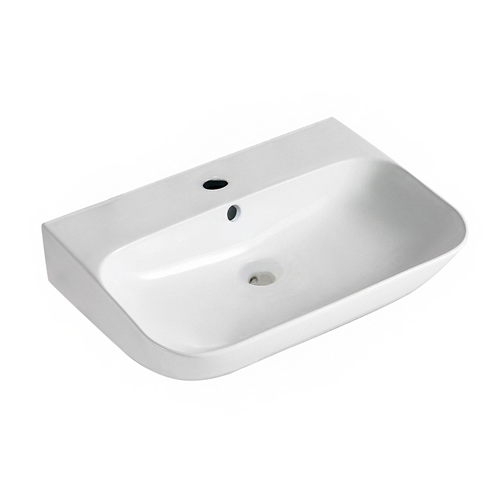 De wastafel heeft een rechthoekige vorm die in de hoeken mooi is afgerond. Het glanzende keramiek kan goed tegen een stootje en is eenvoudig schoon te maken.
