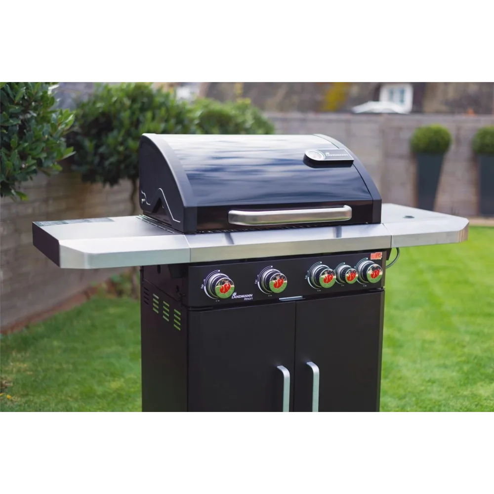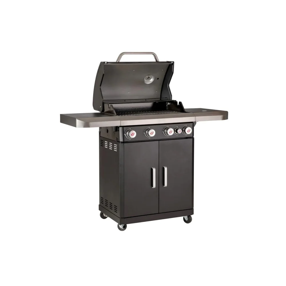 De vier traploos verstelbare branders worden handig ontstoken door de batterijloze piëzo-ontsteking en bieden met een grilloppervlak van ca. 65 x 40 cm voldoende ruimte voor worstjes, steaks enz. Tegelijkertijd kunt u aardappelen, sauzen of groenten op de zijbrander met 3 kW vermogen, de zogenaamde cooK zone.