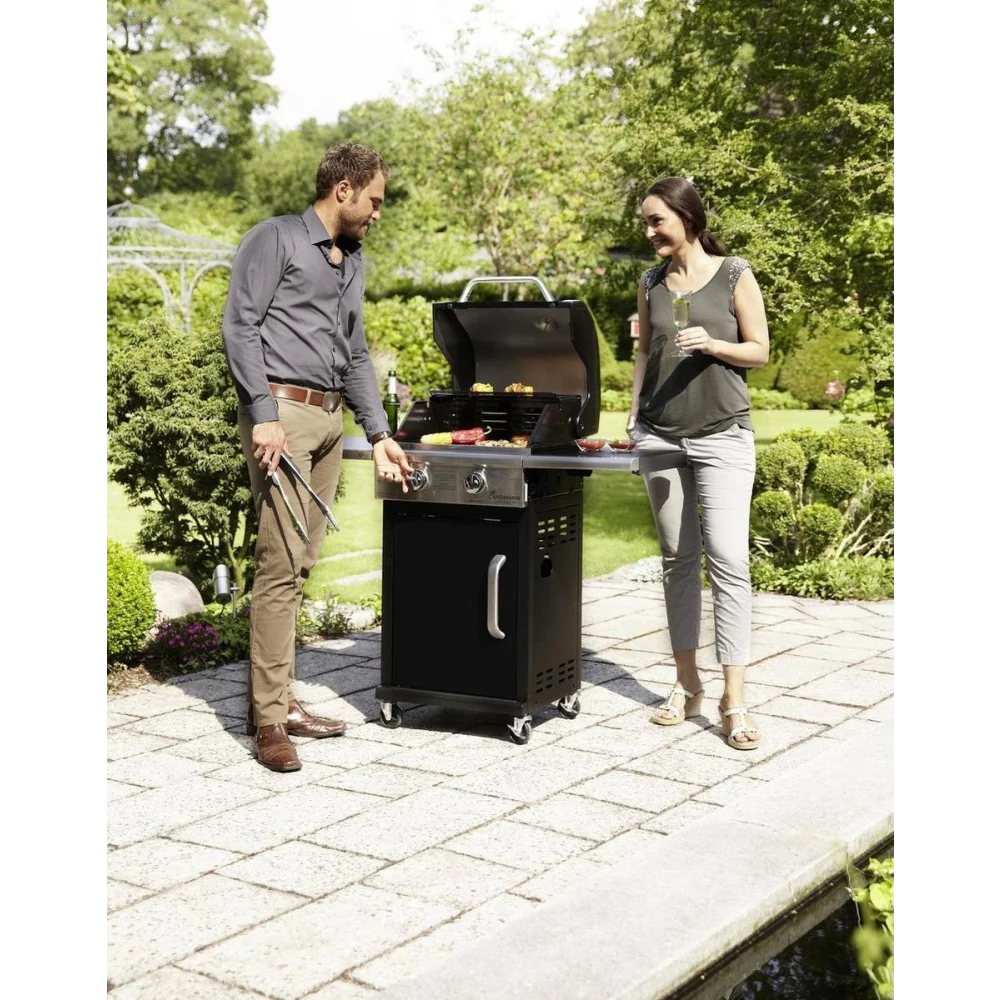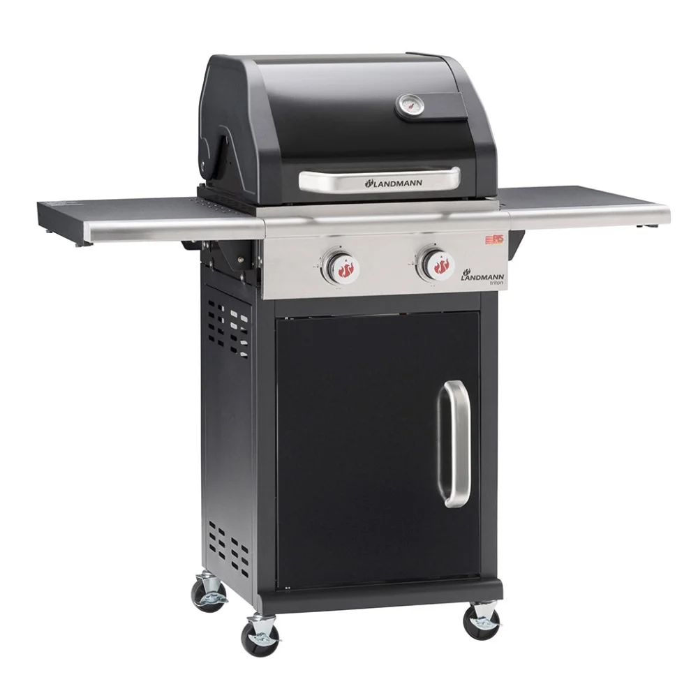De succesvolle LANDMANN gasbarbecue Triton-serie is de uitstekende instap in de premiumklasse van gasbarbecues: de temperatuur wordt optimaal gehandhaafd door het dubbelwandige deksel en kan worden gecontroleerd met behulp van de dekselthermometer. De grillroosters van geëmailleerd gietijzer (48 x 44 cm, 2 delen) zorgen dankzij de warmteopslag voor een perfecte grillbranding.