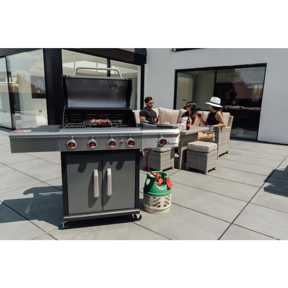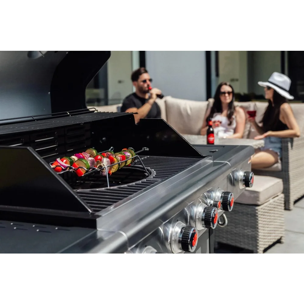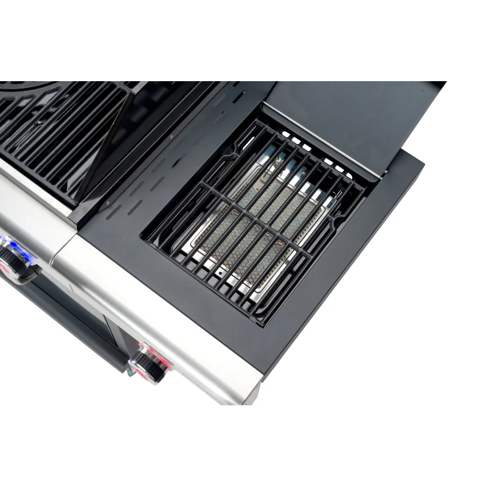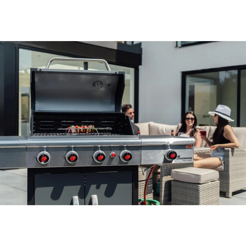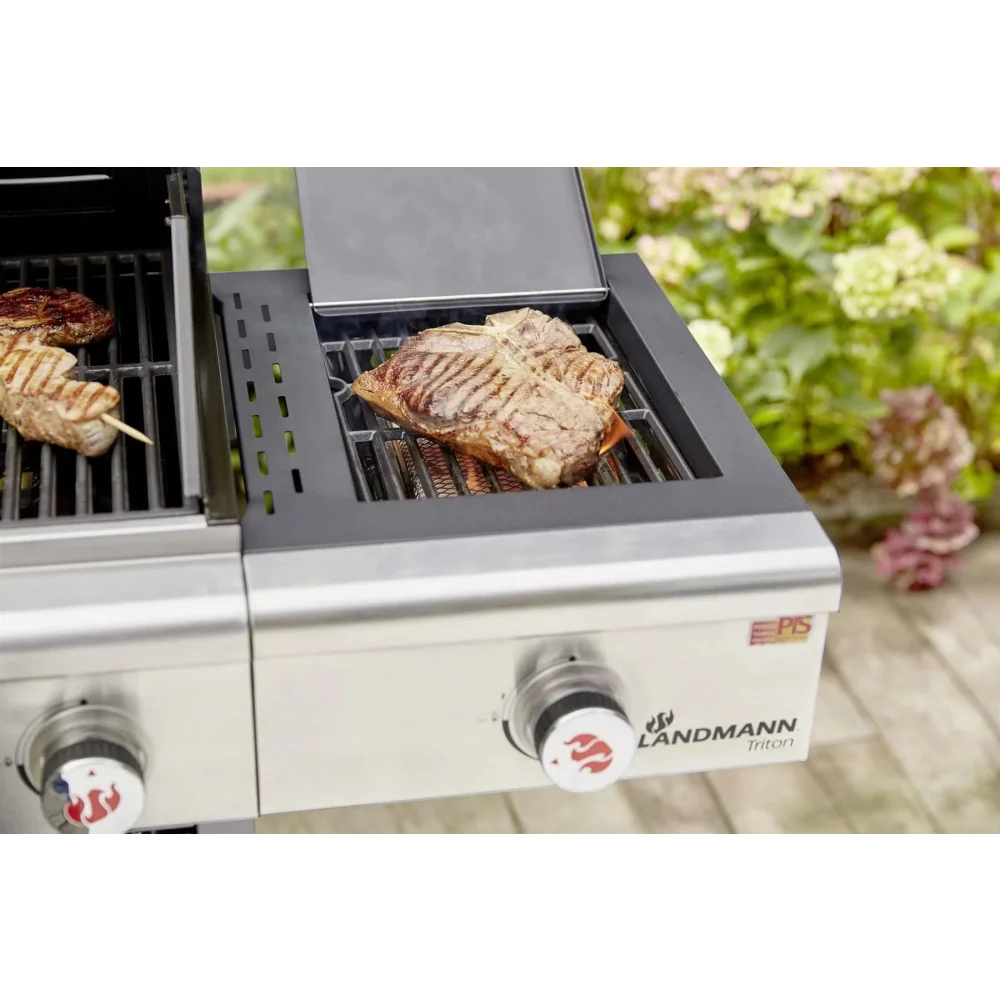 De LANDMANN Triton MaxX PTS 4.1 heeft antwoord op al je vragen. Naast het populaire gepatenteerde PTS systeem en de 4 traploos regelbare RVS branders heeft de gasbarbecue ook de MaxX zone als verzonken ingebouwde infrarood zijbrander.
