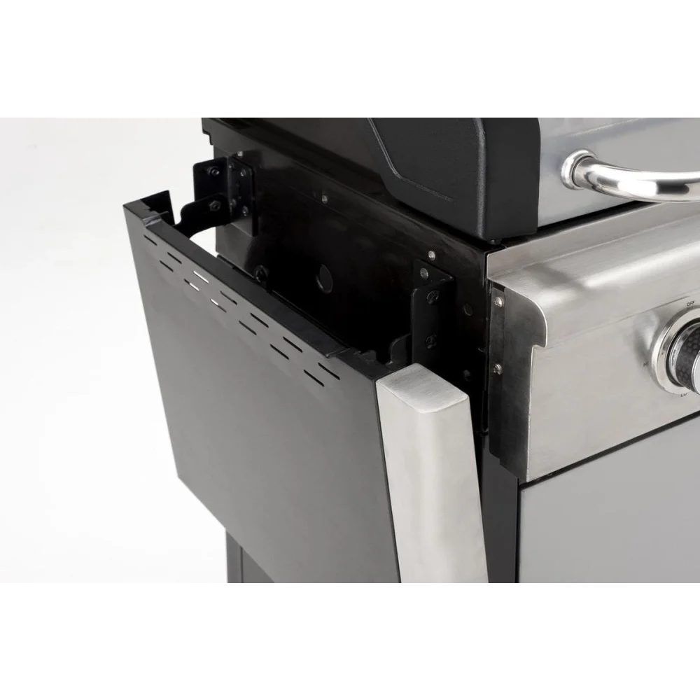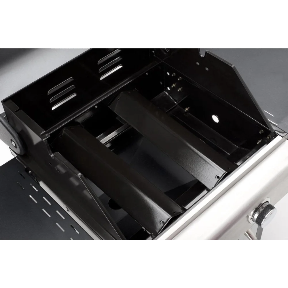 De verzonken ingebouwde zijbrander (3 kW) kan worden gebruikt voor extra grillvariatie: of het nu gaat om bijgerechten bij de gegrilde gerechten of uw eigen creaties uit de grillwok. Gasflessen en grillaccessoires kunnen worden opgeborgen in de gesloten, dubbele wandkast met één deur. Praktisch: de LANDMANN Triton is gemakkelijk te verplaatsen met de 4 lichtlopende zwenkwielen.