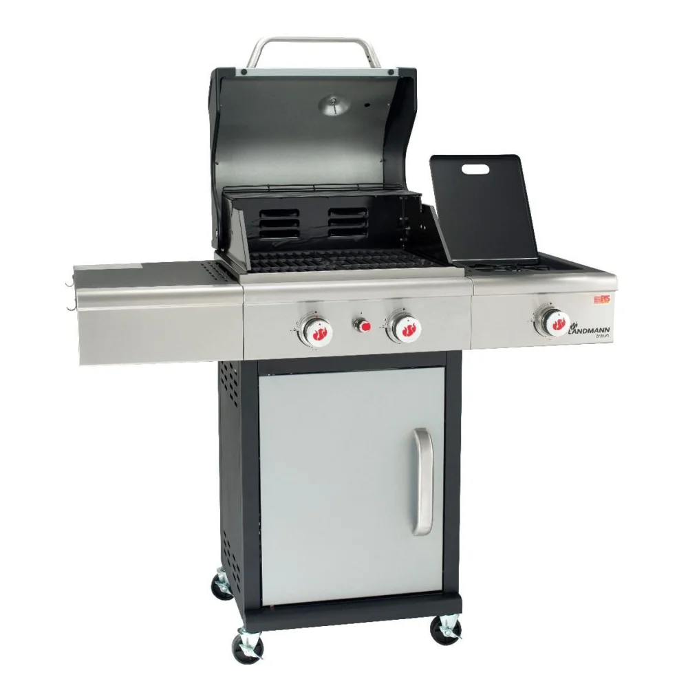 De twee traploos regelbare roestvrijstalen branders met een nominaal vermogen van 7 kW (3,5 kW per brander) garanderen een optimale bereiding van het te grillen voedsel. Door de plaatsing van de branders en de branderkappen kan het PTS-systeem binnen de gasbarbecue functioneren. Het LANDMANN - PTS systeem zorgt voor een optimale, gelijkmatige warmteverdeling tijdens het grillen.