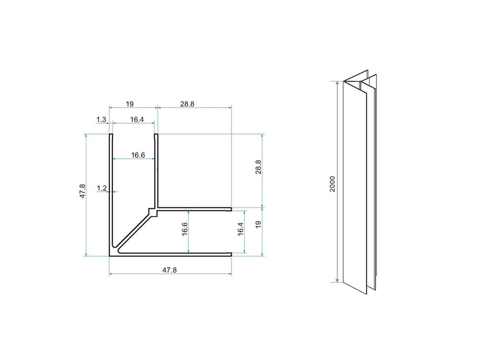 Bestaande uit: matzwart hoekprofiel 200cm