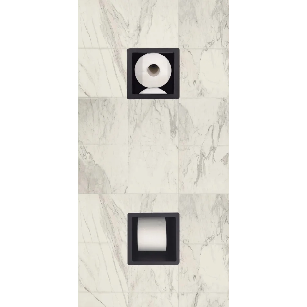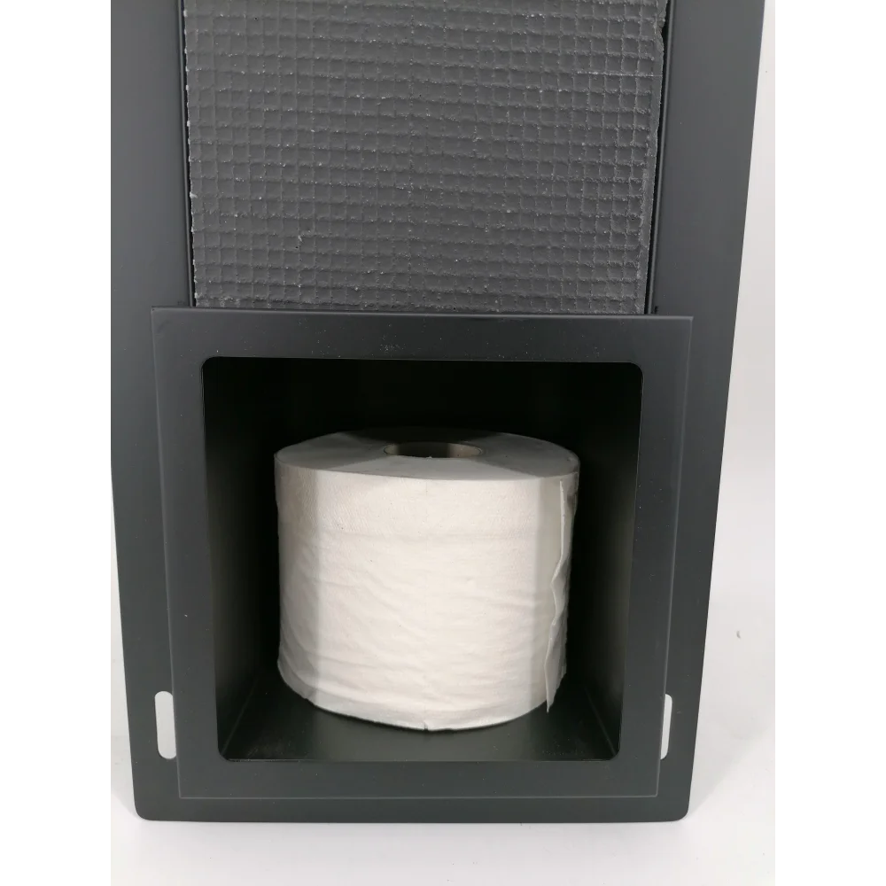 Handige 2-in-1 opberger met ruimte voor maar liefst zes toiletrollen. De houder wordt in de muur ingebouwd waardoor deze volledig is verzonken en de betegelde, gestucte of geverfde wand een mooi glad oppervlak blijft. Gemaakt van RVS dus gemakkelijk in onderhoud en het geeft een luxe en moderne itstraling. Gemakkelijk wc rollen bijvullen of wisselen. Geschikt voor toepassing in de badkamer en toilet. Perfect te combineren met andere L’Aqua® InWall sanitair accessoires.