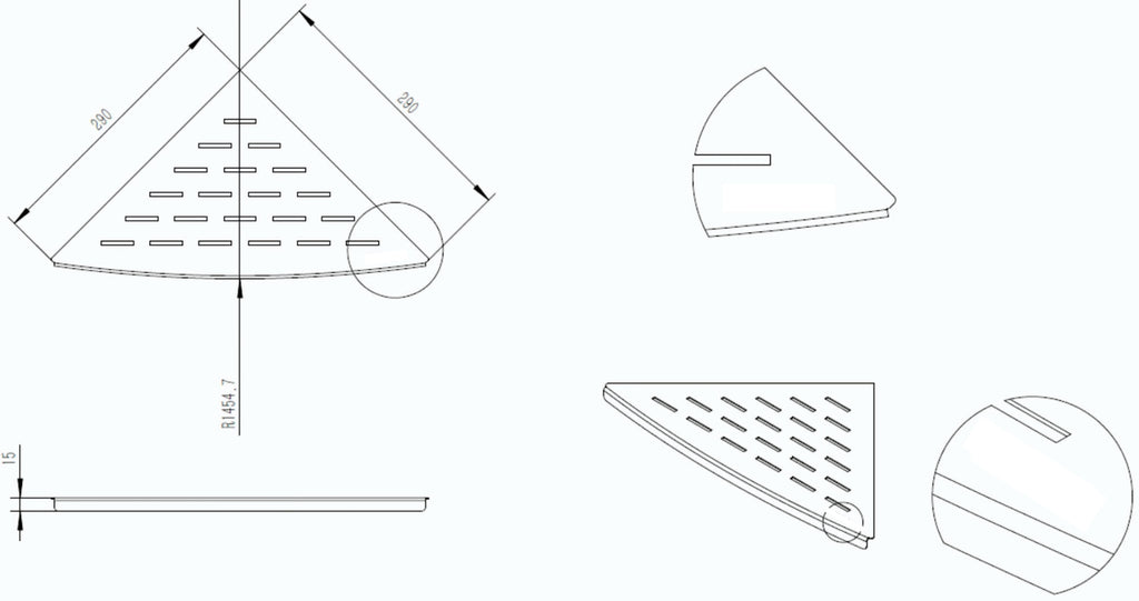 Het hoekplanchet wordt naadloos in de voegen gemonteerd waardoor je een stijlvol geheel creëert. Perfect te combineren met andere L’Aqua® InWall sanitair accessoires.
