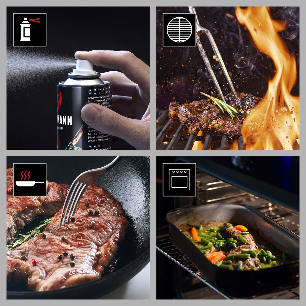 De Landmann anti-aanbak spray met een inhoud van 250 ml is hét smaakneutrale anti-aanbakmiddel voor het grillrooster. Dit voorkomt het vastkleven van etenswaren aan het grillrooster.