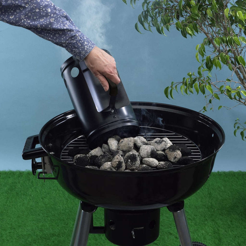 De brikettenstarter heeft een handvat voor eenvoudig en veilig transport. Dankzij het zwarte design ziet de Landmann Houtskoolstarter er ook nog eens stijlvol uit. Met deze praktische accessoire wordt het aansteken van je houtskool of briketten een fluitje van een cent, zodat je snel kunt beginnen met barbecueën en genieten van heerlijke gerechten.