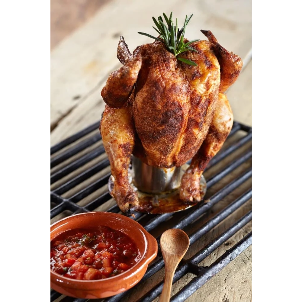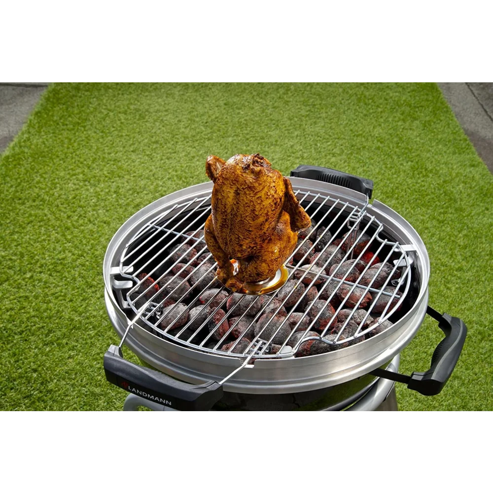 Met de Landmann Kiphouder maak je eenvoudig gemarineerd gevogelte klaar op je smoker of barbecue.