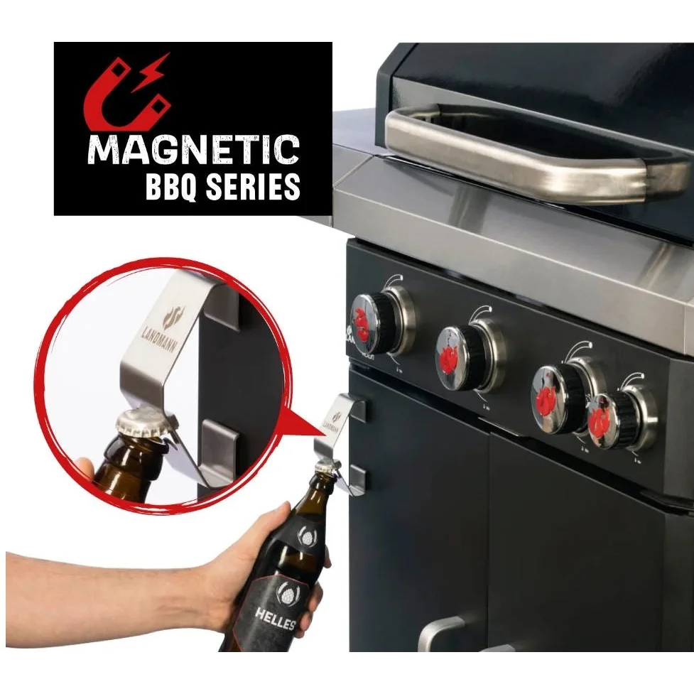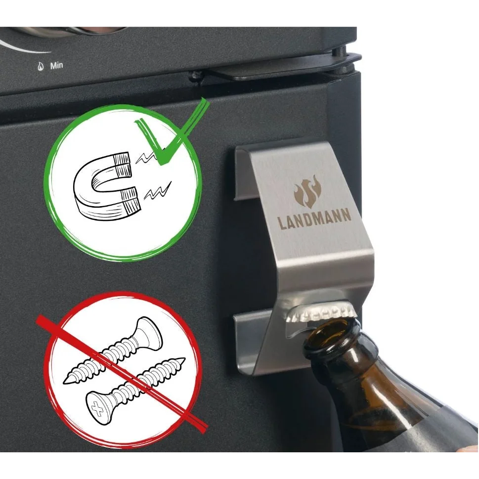 Barbecues en drankjes horen bij elkaar: Met de LANDMANN magnetische flesopener voor de barbecue bent u nu perfect voorbereid op spontane toasts, want u kunt uw frisdrank direct bij de barbecue openen.