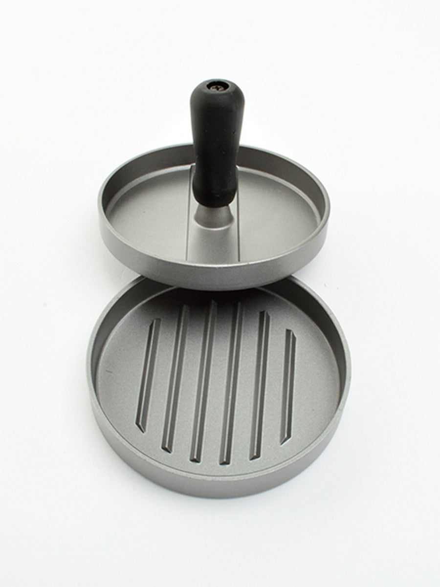 Deze hamburgerpers van Landmann is het ideale accessoire voor perfect gevormde hamburgers! De hamburgerpers van Landman is gemaakt van gegoten aluminium met een antiaanbaklaag en heeft een gegroefd oppervlak voor het sneller bakken van de hamburgers. Met deze pers maak je de perfect gevormde hamburgers voor je barbecuefeestje! Eenvoudige en lekkere hamburgerrecepten zijn te downloaden op de Landmann website.
