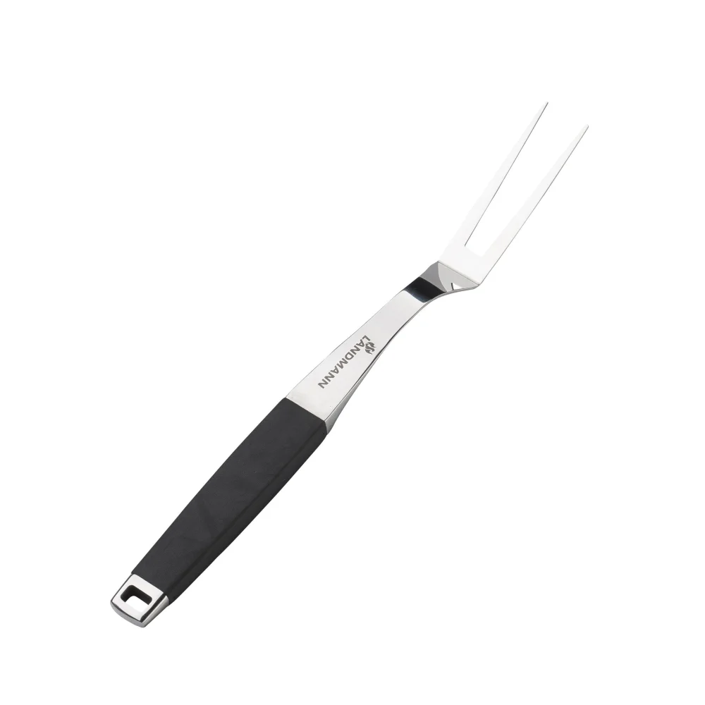Deze hoogwaardige grill vork is gemaakt van hoogwaardig roestvrij staal en is comfortabel in gebruik, dankzij de ergonomisch geoptimaliseerde vorm en rubberen grip. De scherpe vork is ideaal voor het spiezen van barbecue gerechten.