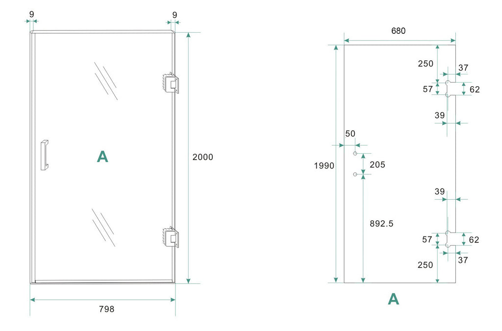 Less glas voor nisdeur rechts 700 x 2000 x 8 mm nano spiegelrook- naar helder glas