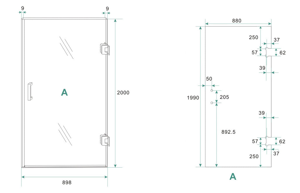 Less glas voor nisdeur rechts 900 x 2000 x 8 mm nano spiegelrook- naar helder glas
