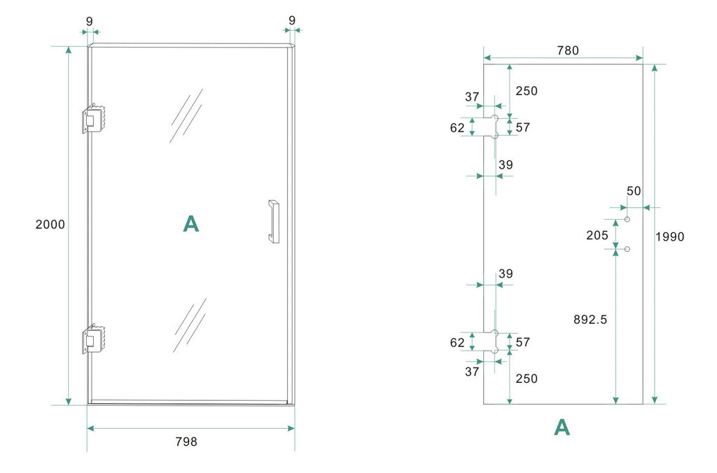 Less nisdeur 800 x 2000 x 8 mm nano helder glas/mat wit