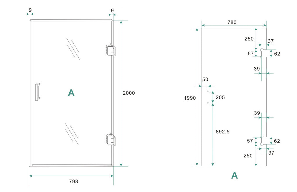 Less nisdeur rechts 800 x 2000 x 8 mm nano spiegelrook- naar helder glas/mat zwart