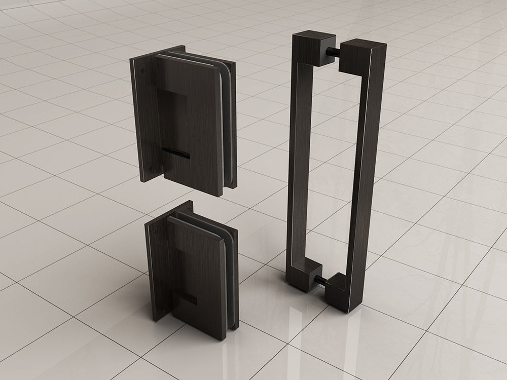 Scharnierset en greep voor profielloze nisdeur gunmetal