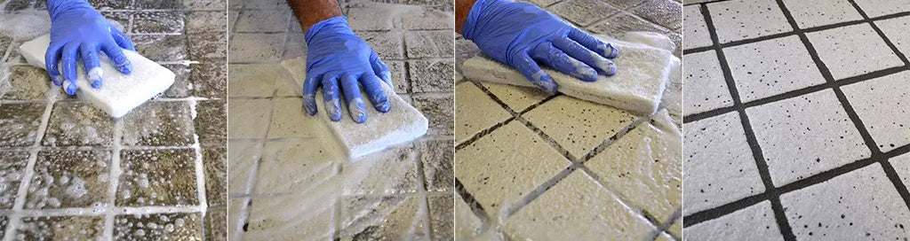 Ecologisch reinigingsmiddel voor het verwijderen van resten van voegwerk, gemaakt met FillGood EVO, het gebruiksklare ééncomponent voegmiddel op basis van polyurethaan in water.