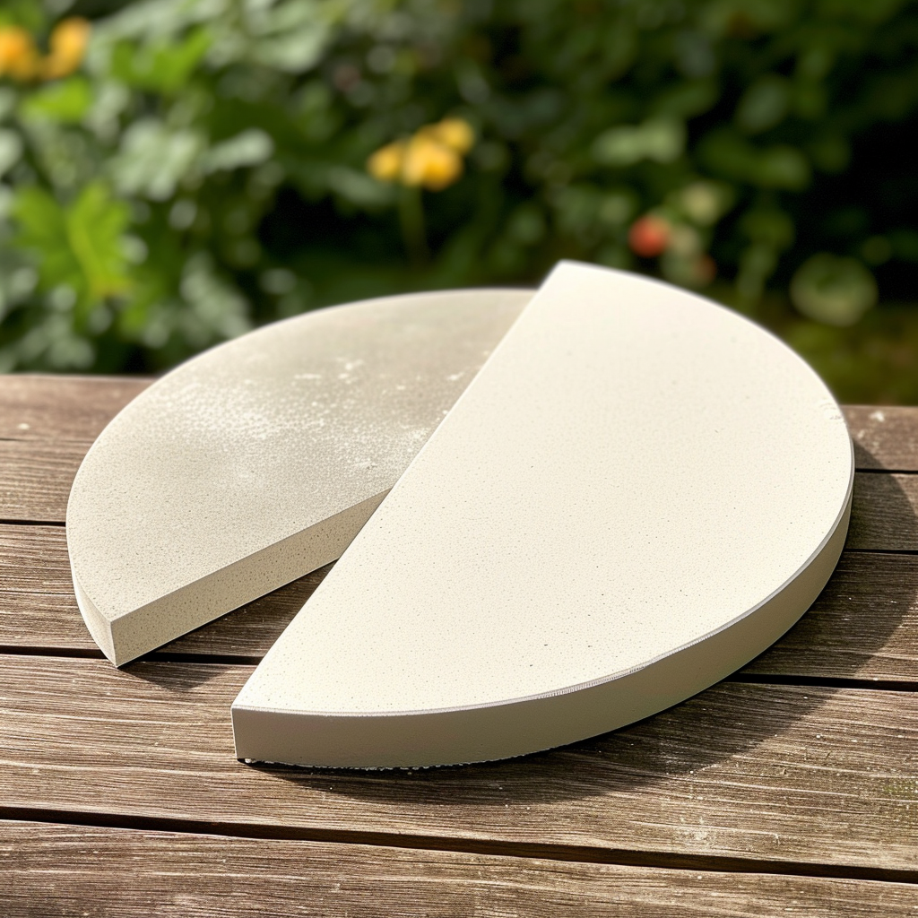 Een half moon plate is een accessoire voor de kamado barbecue die het mogelijk maakt om de temperatuur in verschillende zones van de grill te regelen. Het is een gietijzeren of keramische plaat in de vorm van een halve maan, die op de grill geplaatst wordt en de grillruimte verdeelt in twee zones.