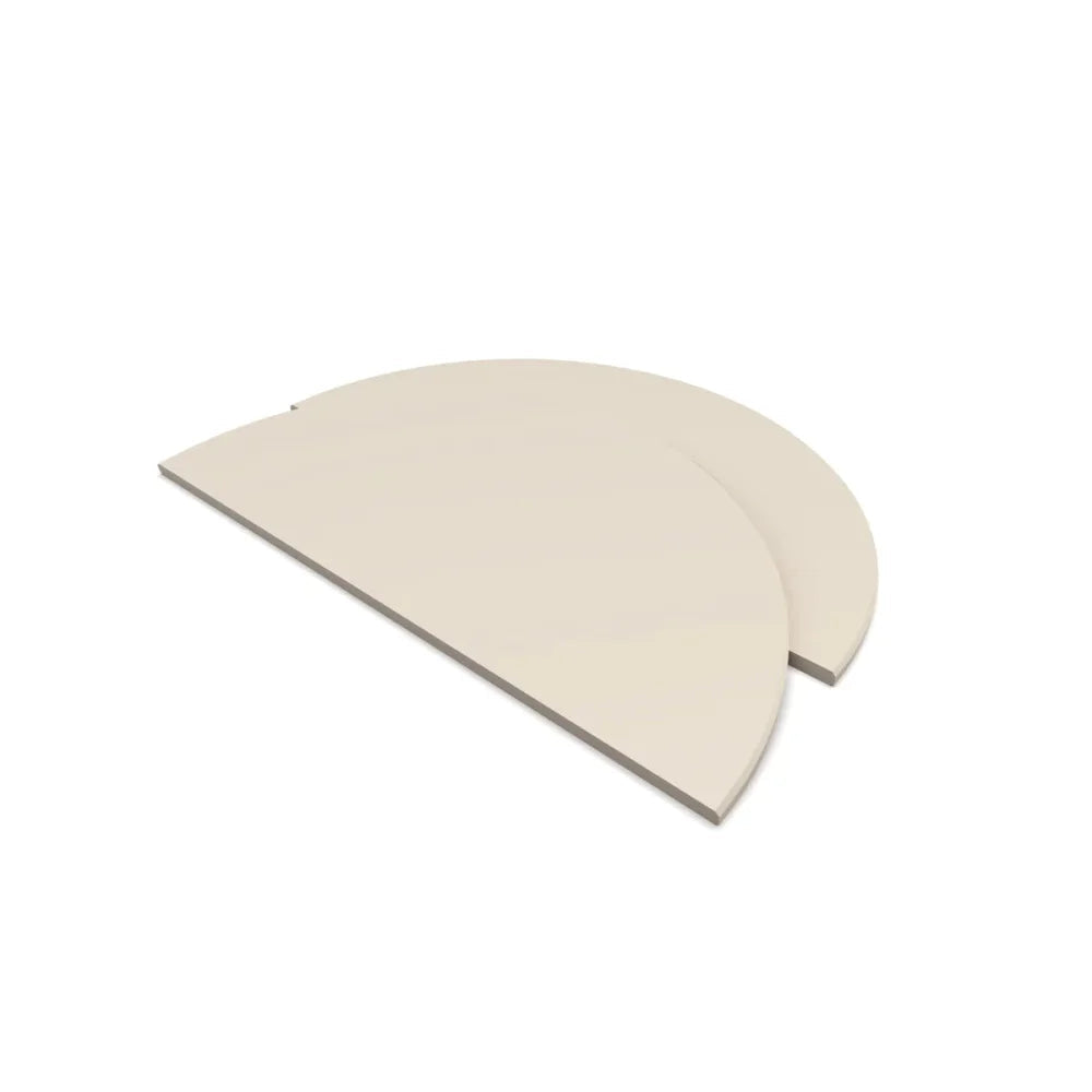 Een half moon plate is een accessoire voor de kamado barbecue die het mogelijk maakt om de temperatuur in verschillende zones van de grill te regelen. Het is een gietijzeren of keramische plaat in de vorm van een halve maan, die op de grill geplaatst wordt en de grillruimte verdeelt in twee zones.