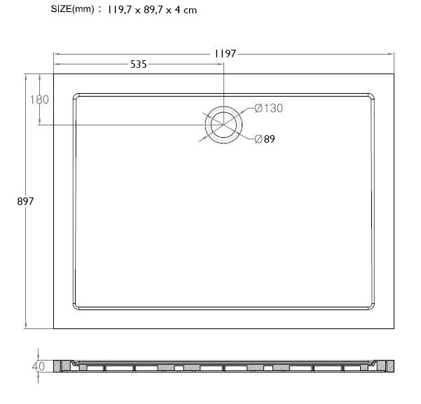 Luxe douchebak SMC rechthoek 119,7x89,7x4 wit