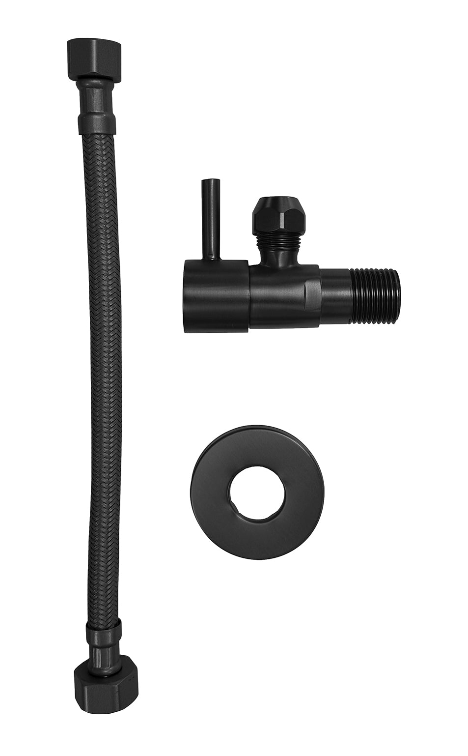 Minimal hoekstopkraan 1/2"x3/8" met flexibele aansluitslang nylon 1/2"x3/8" 30 cm mat zwart