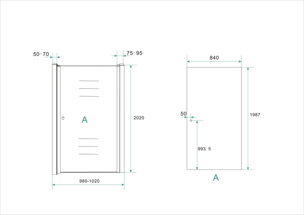 Between nisdeur 1000 x 2000 x 8 mm nano helder glas/chroom