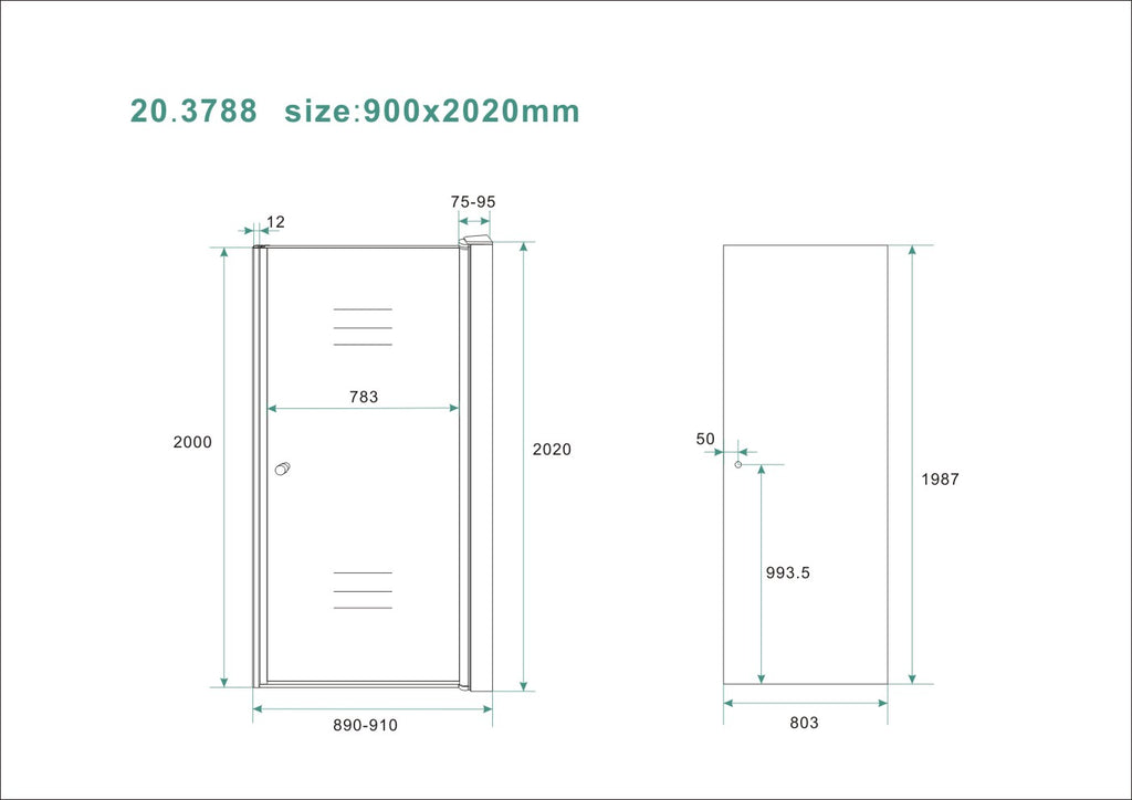 Between nisdeur 900 x 2000 x 8 mm nano rookglas/chroom
