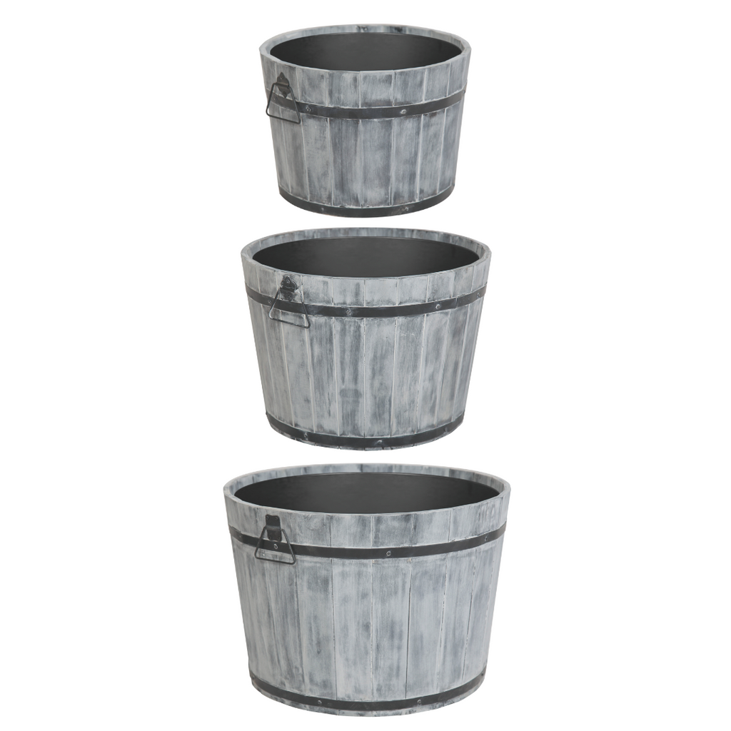 Storm Bloembakken Set - Ronde Kuipen Lignum Acacia FSC Grijs (3-delig)