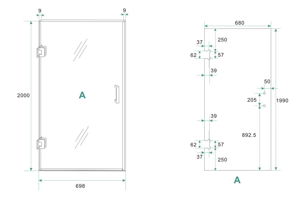 Less nisdeur 700 x 2000 x 8 mm nano helder glas/chroom