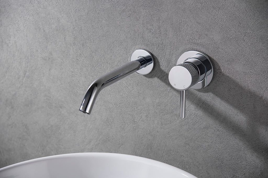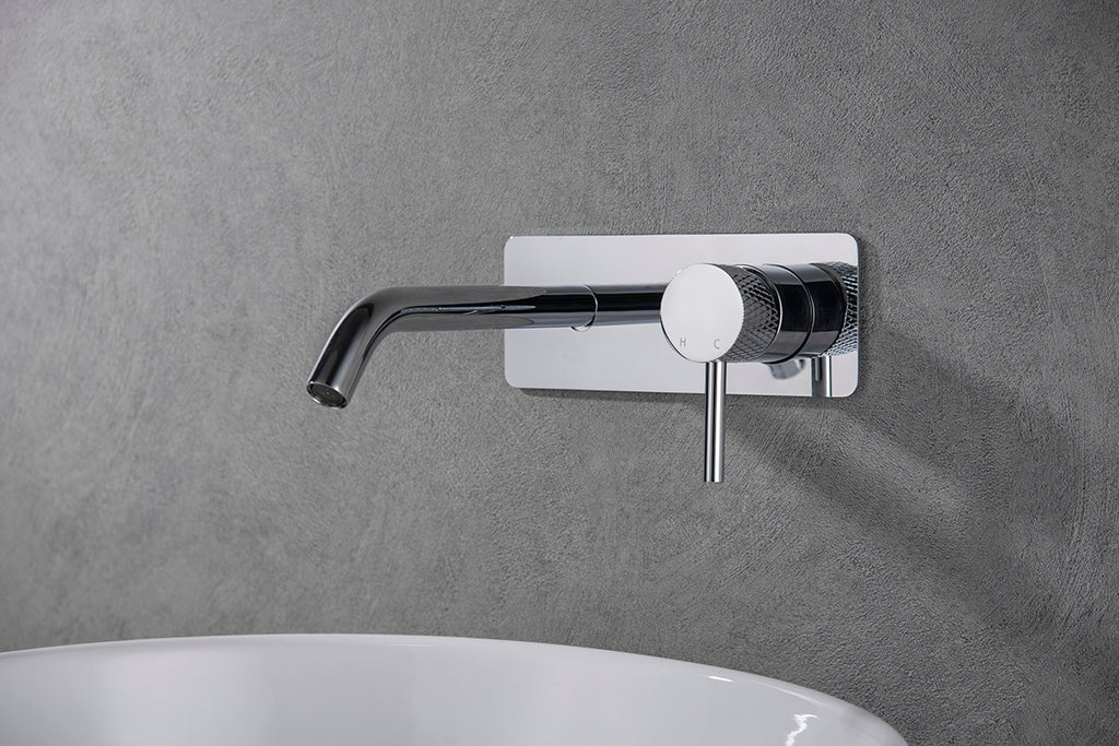 Ribbd inbouw-wastafelmengkraan eenhendel chroomInclusief muurplaat en rozetten, op twee manieren te monteren.