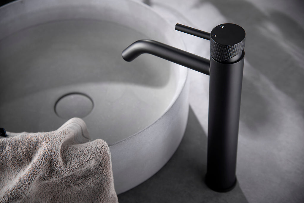 Ribbd XL hoge wastafelmengkraan mat zwart