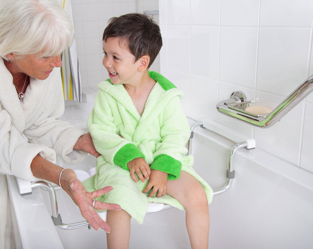 Veiligheidsinformatie: het badzitje moet stevig en veilig op de rand van de badkuip rusten.