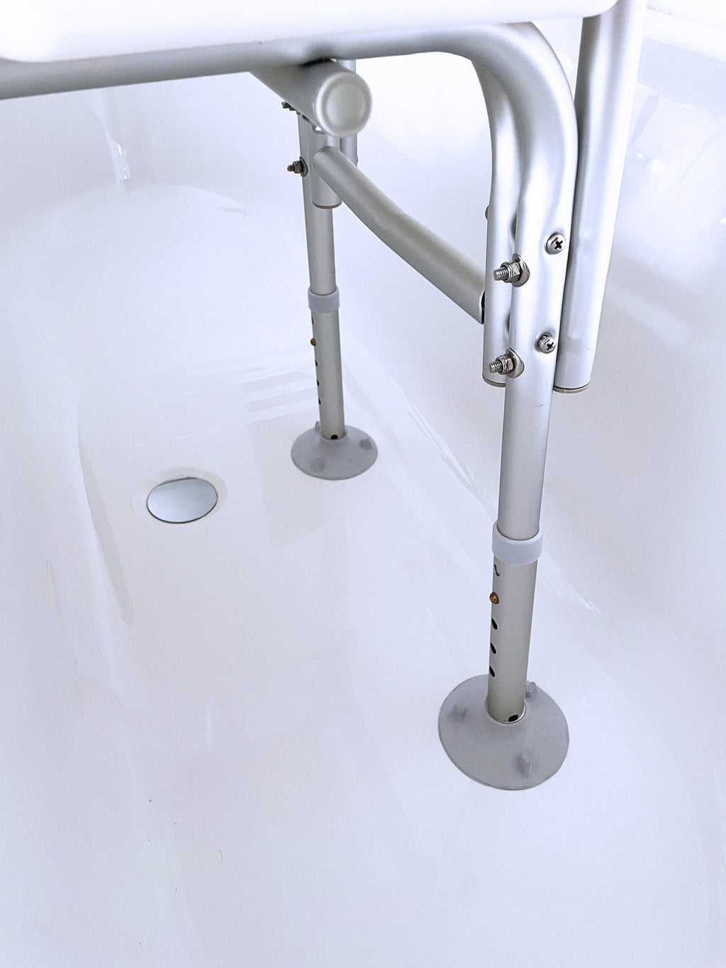Veiligheidsinformatie: zorg ervoor dat de pootjes hoorbaar op hun plaats klikken en op dezelfde hoogte zijn voordat je de bad-transferbank gebruikt.